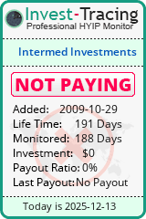 Info: | ISP | H-metrics.pro| ahr | ahm | hyipbiz | hyipbiz | WatchHyipMonitors| | Advanced HYIP Statistics| intermed-investments.com Review, Technical Analysis, RCBs and more at AllStats.io | iprohyip.com